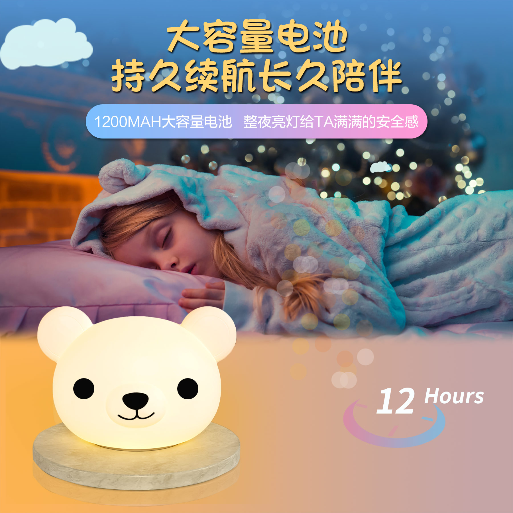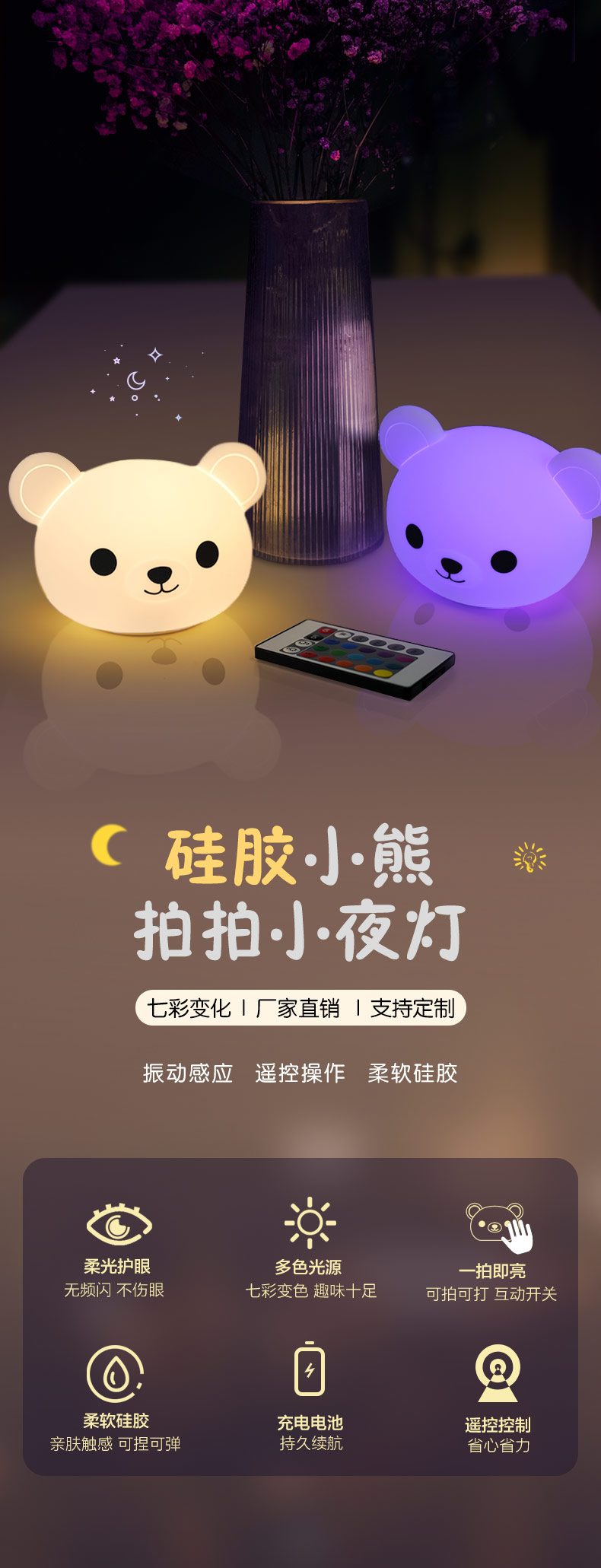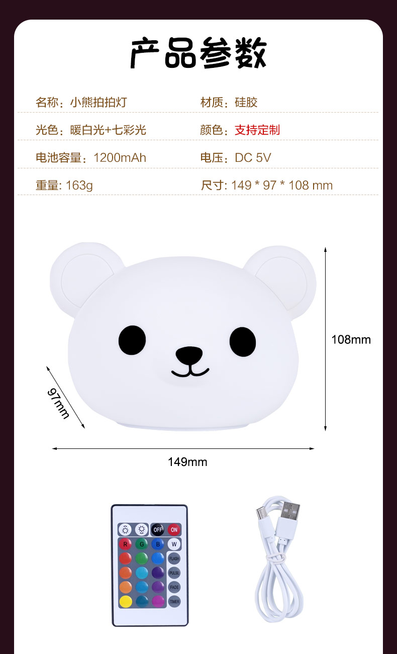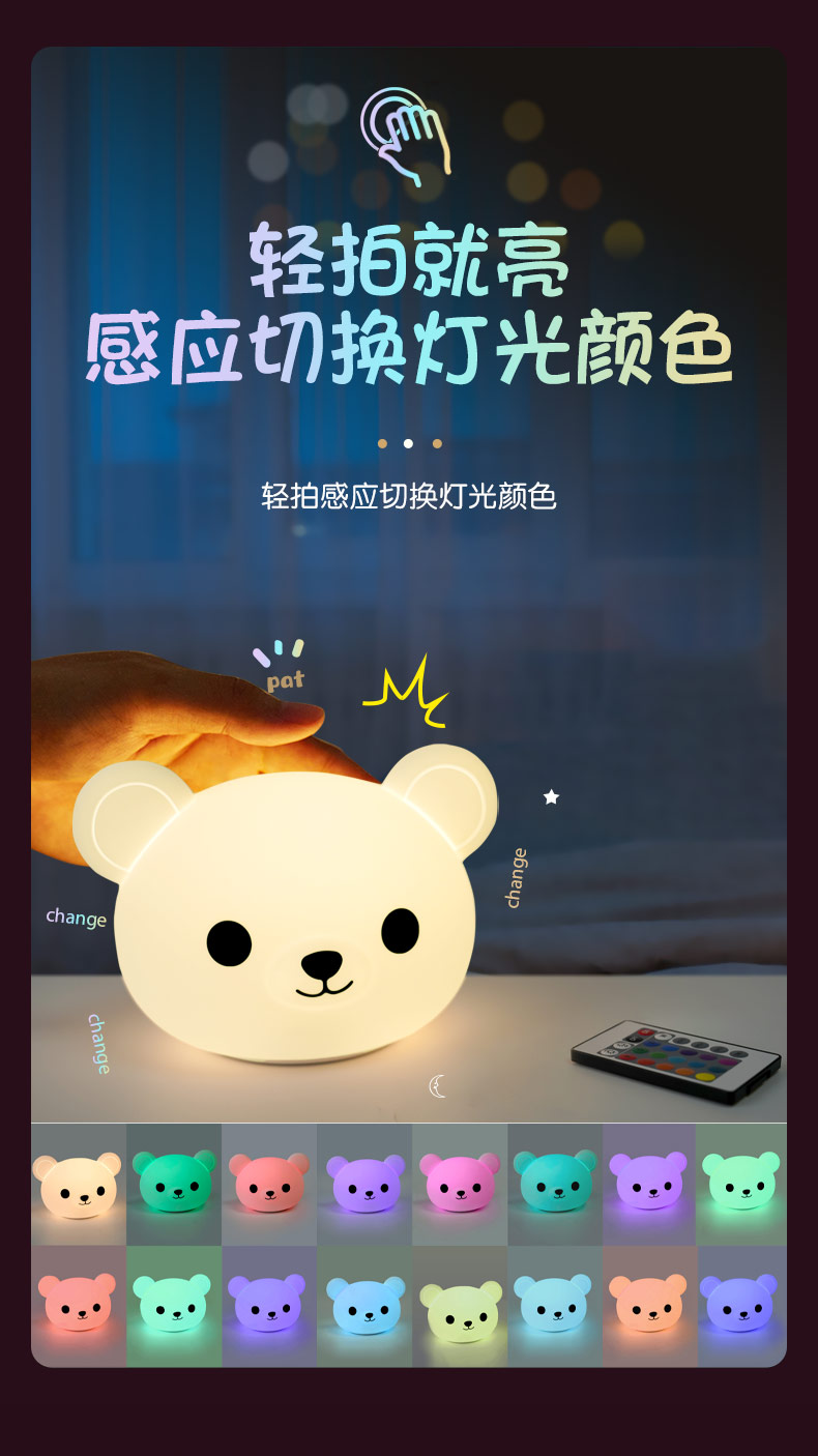 卡通可愛(ài)小熊拍拍燈夜 硅膠拍拍燈